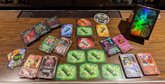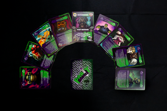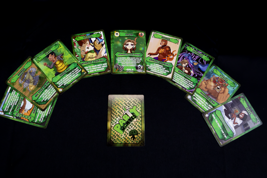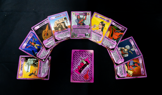 Coming in at 216 (388 w/Expansion) Full color cards with original artwork, PARTYWANTED is a 1-4 player (8 with expansions) Co-Op Deck-Builder with RogueLike level design and Mini-game elements! Each land has different party games with optional drinking to maximize the fun while Heroes work together to escape the Pyramid of Chaos!!